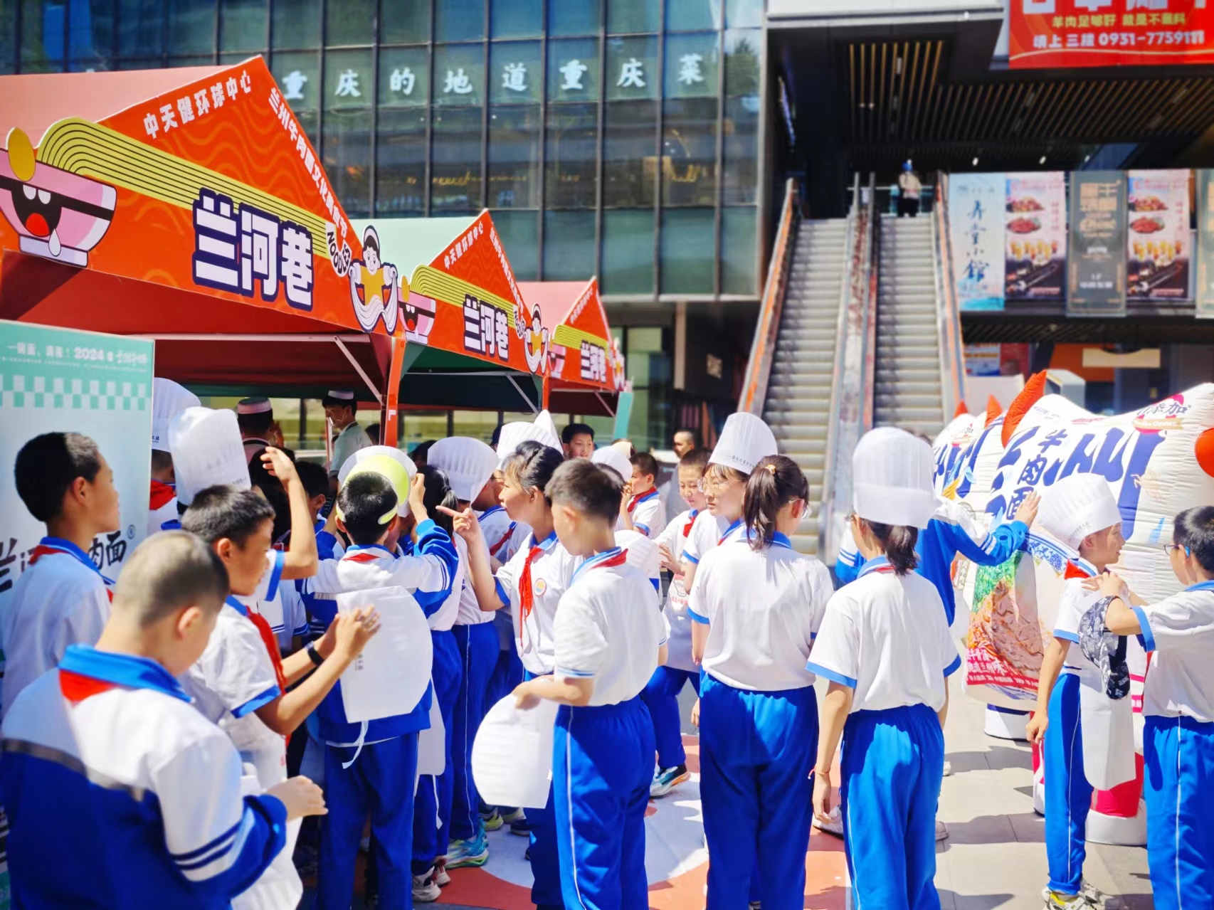 活动当天,还邀请了耿家庄小学的老师带领班级小朋友们在现场观摩学习非物质文化遗产兰州牛肉拉面制作工艺,并现场组织小学生亲手进行牛肉拉面制作过程的讲解体验,感受兰州牛肉拉面特色美食的文化传承。