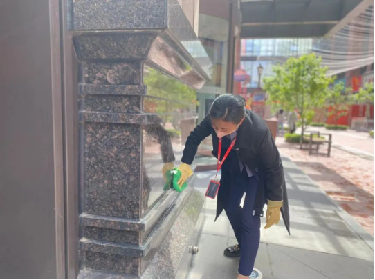 中天健广场建成至今依然保持着这样干净、整洁、安全、舒适状态,离不开众多保洁、保安基层工作人员的清洁与维护。