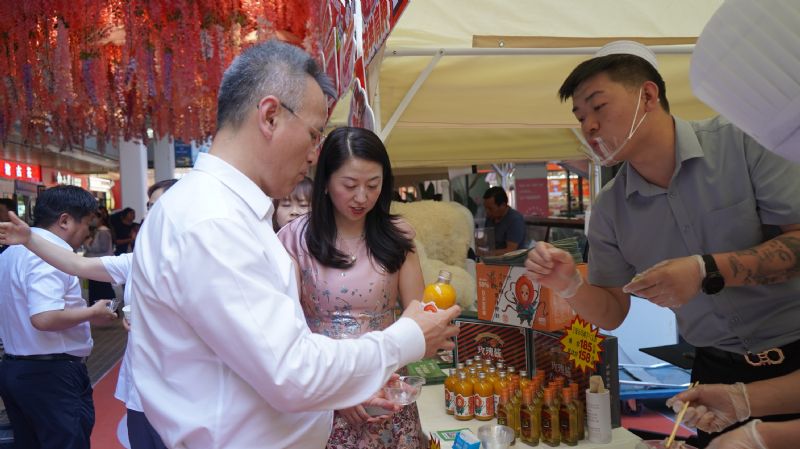 本次美食节活动现场设置了多个展区,除了本地最具特色的兰州牛肉拉面外,还有很多琳琅满目的美食小摊遍布各个展区,还有各式各样的土特产、休闲小吃等,让在场体验的游客们流连忘返。开幕式结束后,中天健集团地产董事长张莉陪同兰州市商务局党组书记、局长苏勇、兰州市商务局党组成员、副局长鲍玉松等领导一行逐一走访了解活动参展商户的经营品类,并在现场品尝后对特色美食进行随机点评和交流。